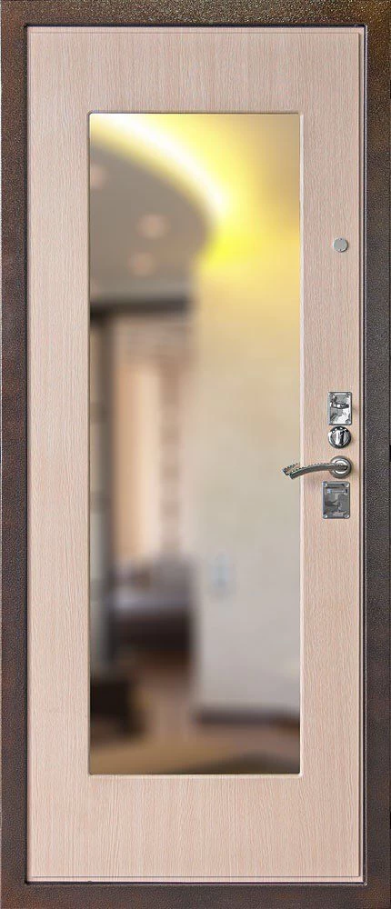 Прочная металлическая Дверь с зеркалом DZ383 по цене от 25 000 руб. под заказ в любой комплектации. Вы можете выбрать материал, замки, цилиндры и многое другое. Производим сами! Быстрая доставка и установка в Карпинске.