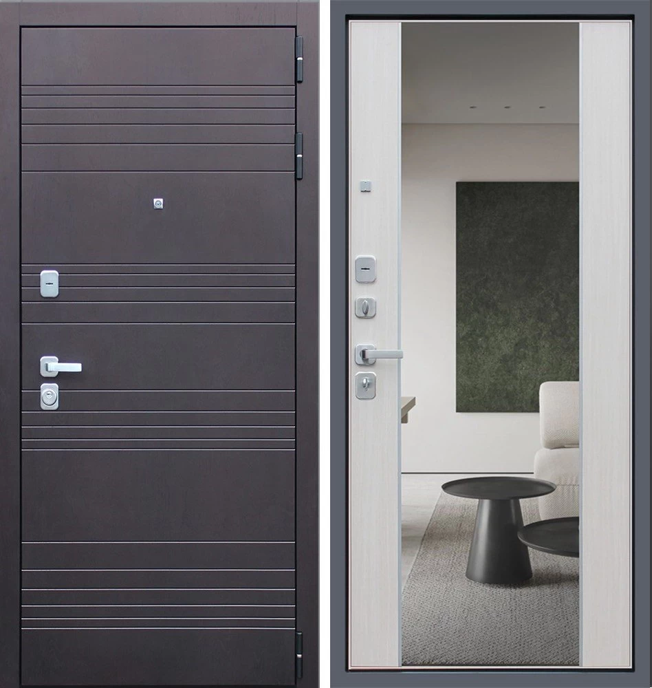 Надежная входная Дверь Дуэт с зеркалом премиум класса по цене 47 381 руб. Большая толщина стали защитит от проникновения в ваш дом, квартиру или коттедж. Используется очень качественная фурнитура: замки, цилиндры, ручки, защелки. Покрытие и отделка двери изготовлено под внимательным контролем производителя. Дверь имеет долгий срок службы и гарантию.