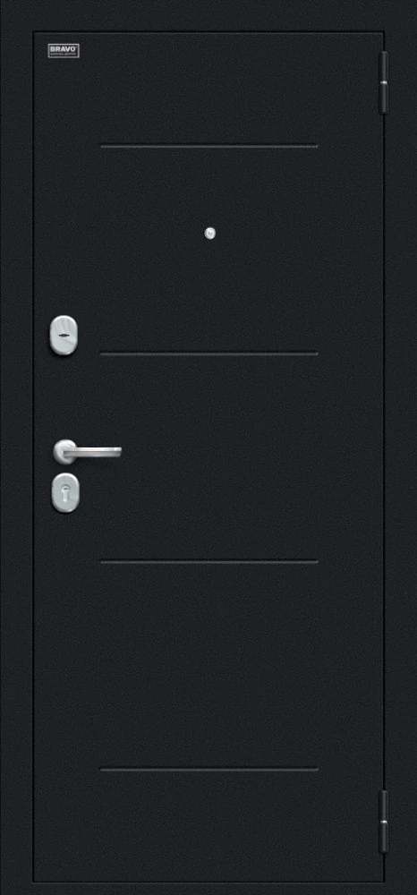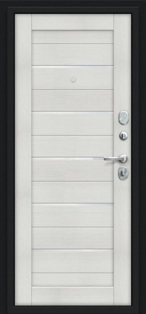 Надежная входная Браво Техно Kale Букле черное/Bianco Veralinga премиум класса по цене 34 381 руб. Большая толщина стали защитит от проникновения в ваш дом, квартиру или коттедж. Используется очень качественная фурнитура: замки, цилиндры, ручки, защелки. Покрытие и отделка двери изготовлено под внимательным контролем производителя. Дверь имеет долгий срок службы и гарантию.