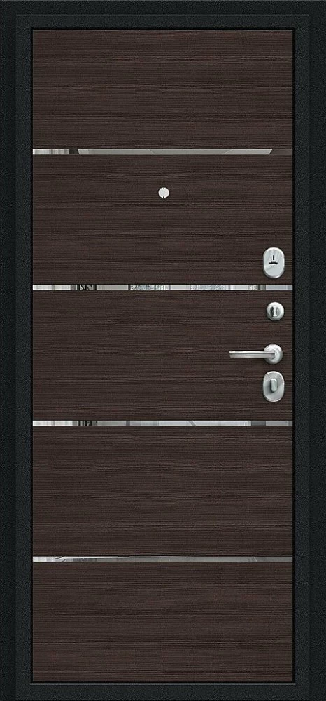Надежная входная Дверь Браво Лайн Букле черное/Wenge Veralinga премиум класса по цене 30 201 руб. Большая толщина стали защитит от проникновения в ваш дом, квартиру или коттедж. Используется очень качественная фурнитура: замки, цилиндры, ручки, защелки. Покрытие и отделка двери изготовлено под внимательным контролем производителя. Дверь имеет долгий срок службы и гарантию.