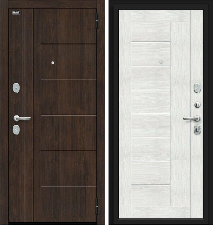 Надежная входная Дверь Браво Модерн Kale Almon/Bianco Veralinga премиум класса по цене 39 331 руб. Большая толщина стали защитит от проникновения в ваш дом, квартиру или коттедж. Используется очень качественная фурнитура: замки, цилиндры, ручки, защелки. Покрытие и отделка двери изготовлено под внимательным контролем производителя. Дверь имеет долгий срок службы и гарантию.