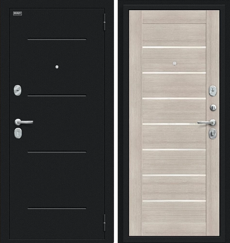 Надежная входная Дверь Браво Техно Букле черное/Cappuccino Veralinga премиум класса по цене 31 481 руб. Большая толщина стали защитит от проникновения в ваш дом, квартиру или коттедж. Используется очень качественная фурнитура: замки, цилиндры, ручки, защелки. Покрытие и отделка двери изготовлено под внимательным контролем производителя. Дверь имеет долгий срок службы и гарантию.