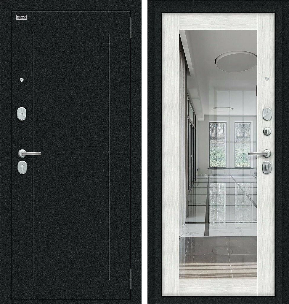 Надежная входная Входная дверь Флэш Букле черное/Bianco Veralinga BR4237 премиум класса по цене 33 613 руб. Большая толщина стали защитит от проникновения в ваш дом, квартиру или коттедж. Используется очень качественная фурнитура: замки, цилиндры, ручки, защелки. Покрытие и отделка двери изготовлено под внимательным контролем производителя. Дверь имеет долгий срок службы и гарантию.