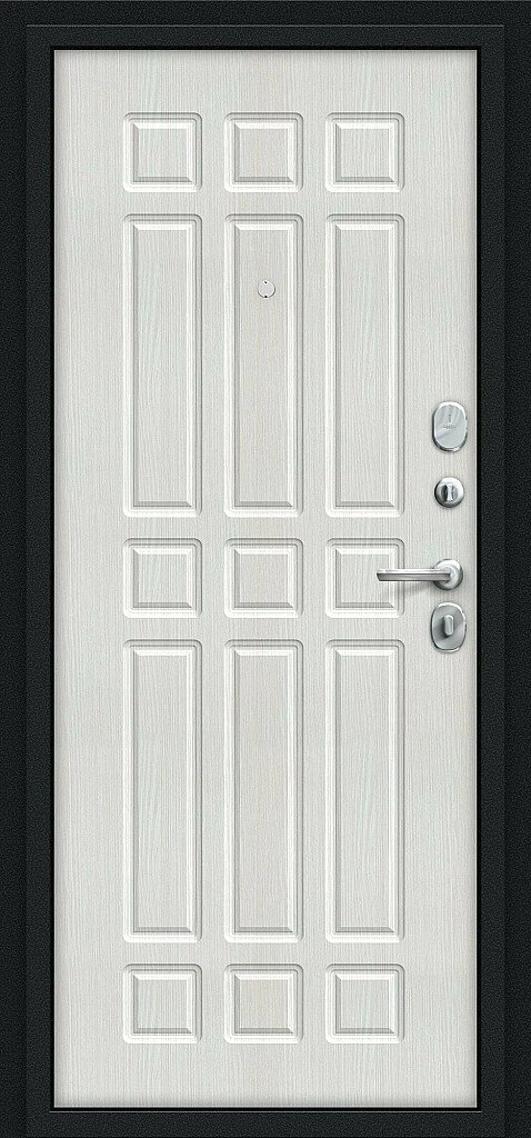 Надежная входная Входная дверь Мило Букле черное/Bianco Veralinga BR4301 премиум класса по цене 30 353 руб. Большая толщина стали защитит от проникновения в ваш дом, квартиру или коттедж. Используется очень качественная фурнитура: замки, цилиндры, ручки, защелки. Покрытие и отделка двери изготовлено под внимательным контролем производителя. Дверь имеет долгий срок службы и гарантию.