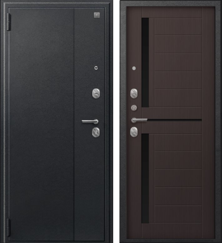 Надежная входная Дверь A-01 черный сатин - лиственница тёмная премиум класса по цене 31 281 руб. Большая толщина стали защитит от проникновения в ваш дом, квартиру или коттедж. Используется очень качественная фурнитура: замки, цилиндры, ручки, защелки. Покрытие и отделка двери изготовлено под внимательным контролем производителя. Дверь имеет долгий срок службы и гарантию.