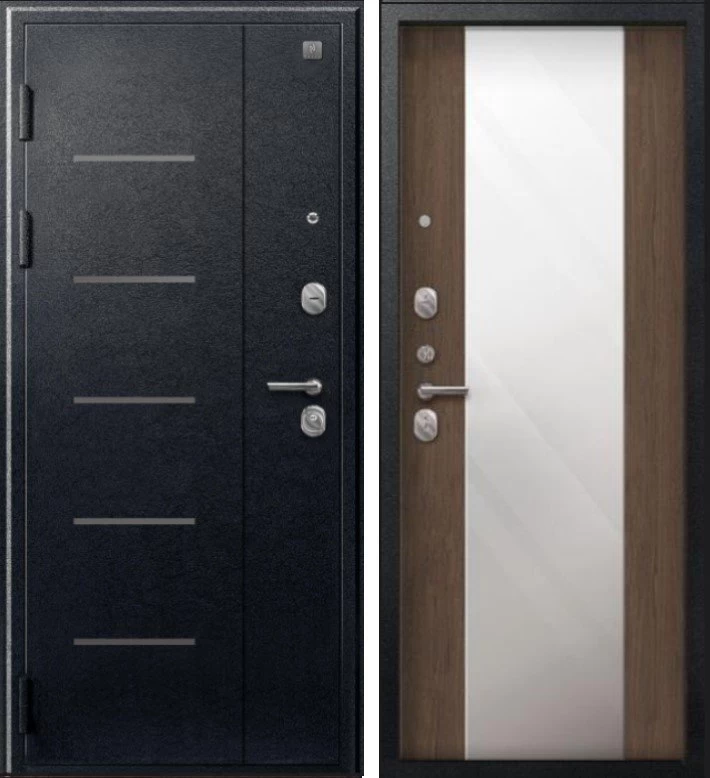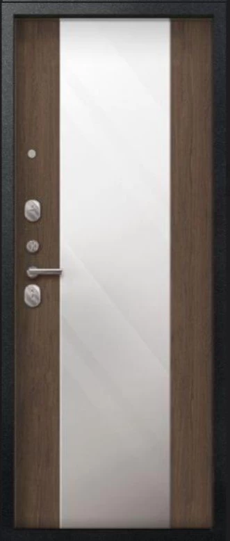Надежная входная Дверь V-04 Черный муар - Миндаль Зеркало премиум класса по цене 42 731 руб. Большая толщина стали защитит от проникновения в ваш дом, квартиру или коттедж. Используется очень качественная фурнитура: замки, цилиндры, ручки, защелки. Покрытие и отделка двери изготовлено под внимательным контролем производителя. Дверь имеет долгий срок службы и гарантию.