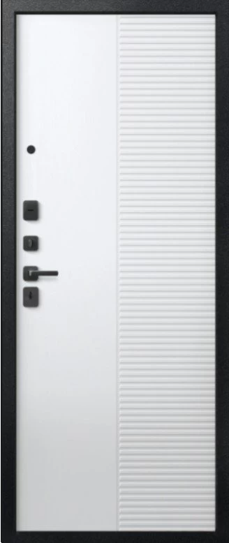 Надежная входная Дверь V-18 Черный муар + Кашемир графит - Кашемир Белый премиум класса по цене 46 881 руб. Большая толщина стали защитит от проникновения в ваш дом, квартиру или коттедж. Используется очень качественная фурнитура: замки, цилиндры, ручки, защелки. Покрытие и отделка двери изготовлено под внимательным контролем производителя. Дверь имеет долгий срок службы и гарантию.