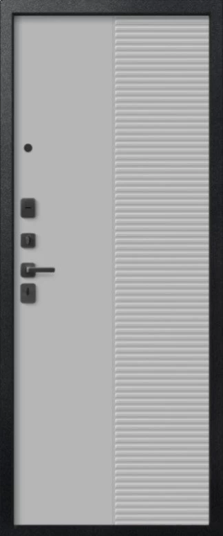 Надежная входная Дверь V-18 Черный муар + Кашемир графит - Кашемир сильвер премиум класса по цене 46 881 руб. Большая толщина стали защитит от проникновения в ваш дом, квартиру или коттедж. Используется очень качественная фурнитура: замки, цилиндры, ручки, защелки. Покрытие и отделка двери изготовлено под внимательным контролем производителя. Дверь имеет долгий срок службы и гарантию.